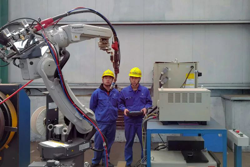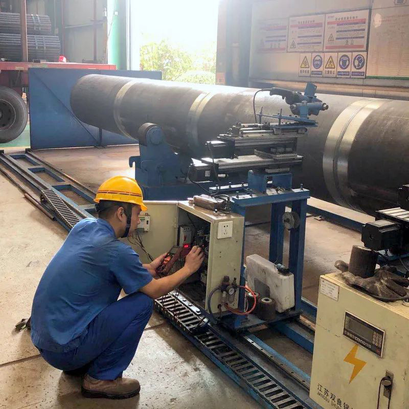 類似設(shè)備技術(shù)改造,吳昊參與完成的項(xiàng)目數(shù)不勝數(shù),比如雙絲埋弧焊焊接電器改造、所有埋弧焊機(jī)無線遙控改造、組隊(duì)滾輪架拼裝焊接改造、水管鍋筒焊接機(jī)器打磨、模式壁自動焊的電焊機(jī)改造等項(xiàng)目。就在剛剛他又和機(jī)修師傅們一起完成一項(xiàng)火管車間管頭打磨機(jī)自動化的改造,原來四五個(gè)人花費(fèi)幾天才能完成的人工打磨,現(xiàn)在只要一人調(diào)運(yùn)上管,按下啟動全部自動打磨好,省時(shí)省力節(jié)約成本。